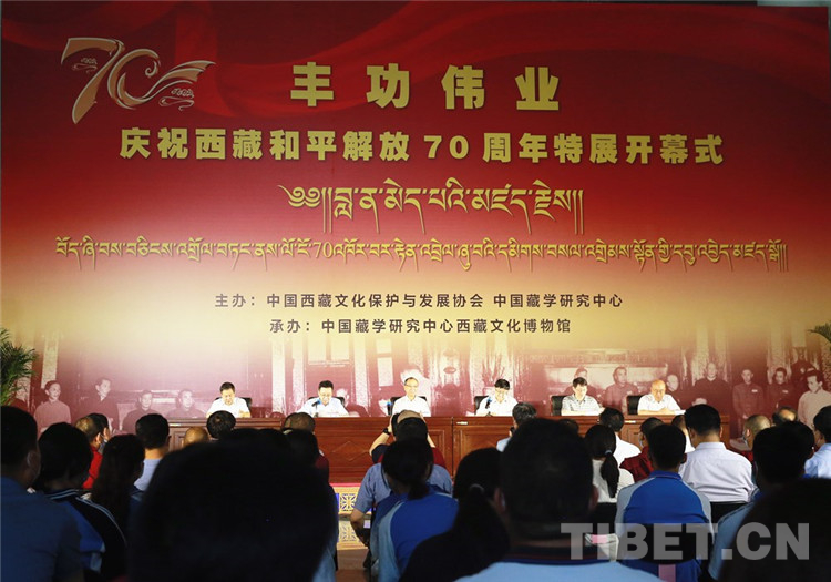 中國西藏網(wǎng)訊 2021年6月29日,由中國西藏文化保護與發(fā)展協(xié)會、中國藏學(xué)研究中心主辦的“豐功偉業(yè)——慶祝西藏和平解放70周年特展”在中國藏學(xué)研究中心西藏文化博物館開幕。中國西藏文化保護與發(fā)展協(xié)會副會長斯塔、中國藏學(xué)研究中心黨組書記陳宗榮出席開幕式并致辭。中國藏學(xué)研究中心總干事鄭堆主持開幕式。中央宣傳部、中央統(tǒng)戰(zhàn)部相關(guān)同志和有關(guān)專家學(xué)者等百余人參加開幕式。