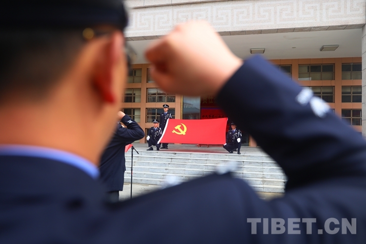 圖為林芝邊境管理支隊(duì)民警重溫入黨誓詞 攝影:姜?jiǎng)P峰