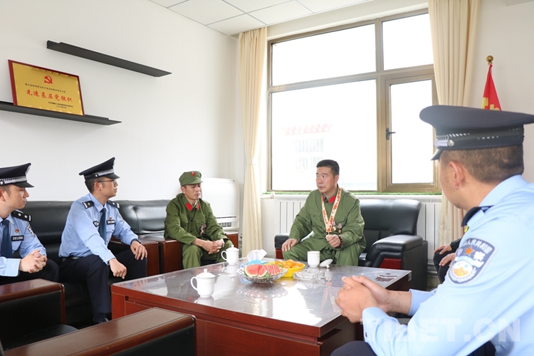 圖為對(duì)越自衛(wèi)反擊戰(zhàn)功臣蒲體超同志正在向里龍邊境派出所民警講述親身經(jīng)歷的故事 攝影:曹忠皇