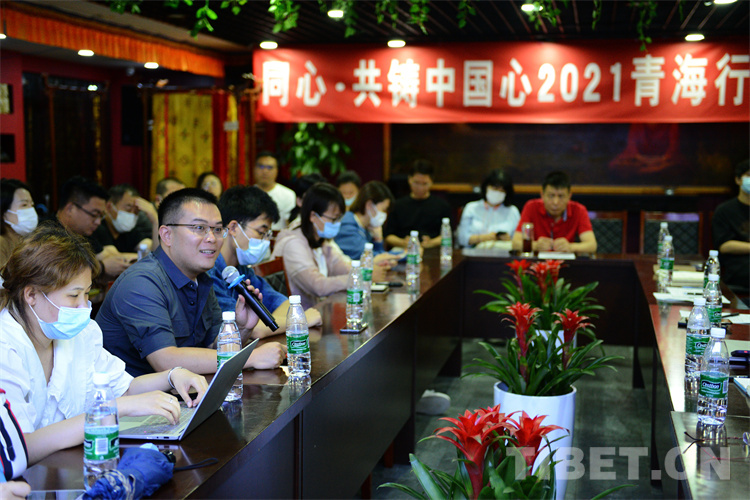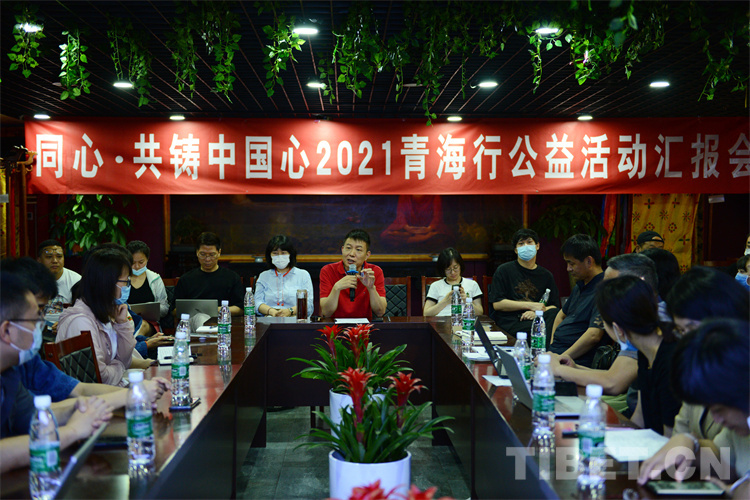 圖為“同心·共鑄中國(guó)心”組委會(huì)項(xiàng)目辦公室主任薛艷斌行前介紹果洛州具體情況