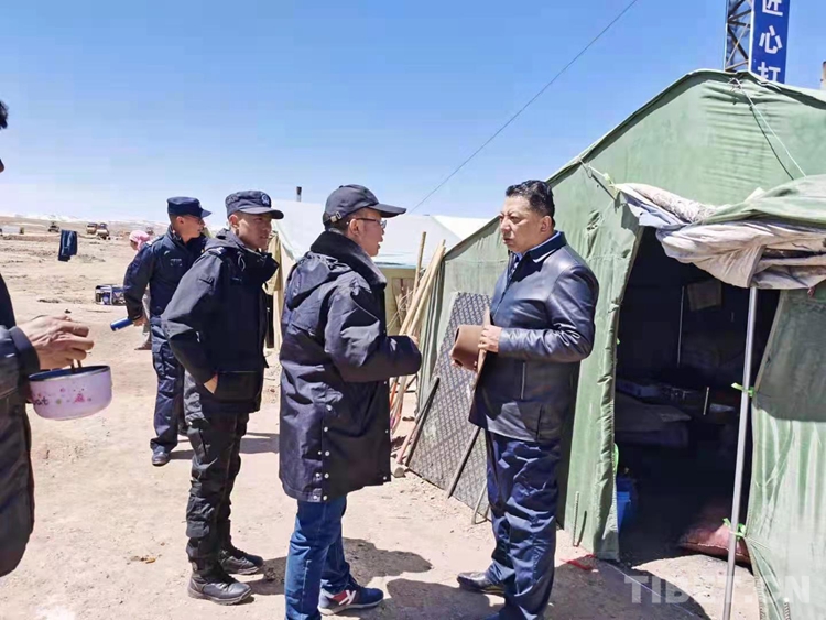 圖為麻多鄉(xiāng)黨委書記(右一)在源頭保護(hù)站調(diào)研生態(tài)狀況 攝影:才仁當(dāng)智