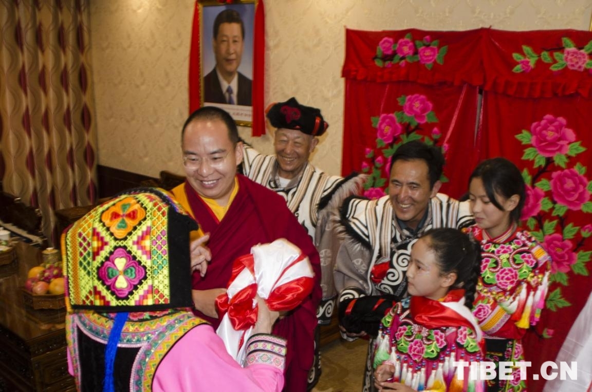 調(diào)研期間,班禪來到松潘縣進安鎮(zhèn)居民王永明的家中。班禪在一家人的圍繞中,仔細詢問家庭收入、生活情況并親切地向他家的小女兒說:“要繼續(xù)努力學習,將來努力報效祖國,好不好?”班禪隨后表示,現(xiàn)在的生活越來越好,黨和政府為大家提供了很多機會,機遇多、機會多。能趕上這么好的一個偉大時代,也是我們大家的福報。