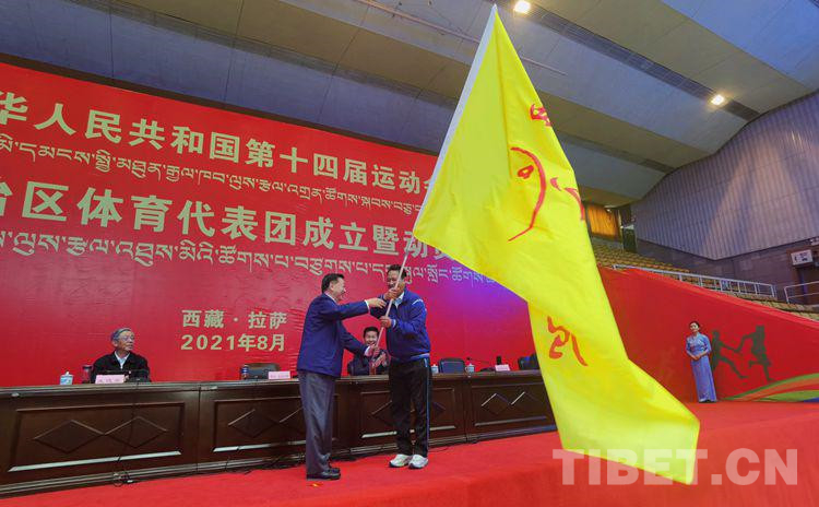 圖為第十四屆全運(yùn)會西藏自治區(qū)體育代表團(tuán)成立授旗儀式 攝影:賈華加