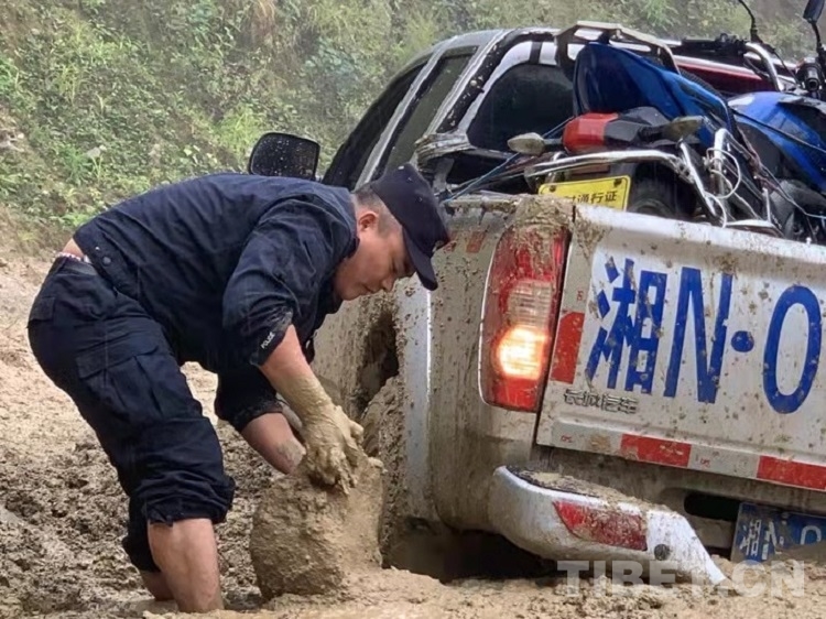 “當(dāng)天上午我與家人正打算回家,誰知雨越下越大,不時還有泥石流,為躲避滾落下來的碎石,一不注意車輪打滑,導(dǎo)致車輛陷入泥土中,越陷越深,我們害怕地跳下了車就報警?!标愊壬窃撥嚨能囍?,回憶起事情經(jīng)過他還心有余悸,“所幸有移民管理警察,當(dāng)我們看到他們的身影出現(xiàn),就知道有救了。他們很給力,與當(dāng)?shù)刳s來幫忙的群眾一起解救了我們,真的非常感謝他們!”(中國西藏網(wǎng) 通訊員/孫月 姜凱峰 記者/王佳豪 圖片由背崩邊境派出所提供)