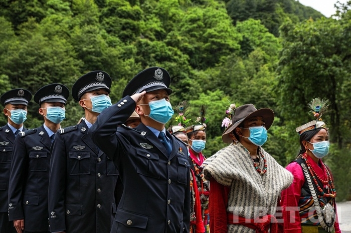 圖為2020?年?9?月?16?日 陳塘邊境派出所民警和夏爾巴群眾一同升國旗