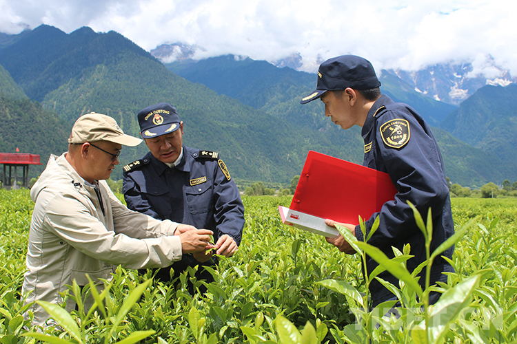 圖為海關(guān)關(guān)員在西藏自治區(qū)林芝市易貢茶場(chǎng)實(shí)地指導(dǎo)工作 圖片由拉薩海關(guān)提供