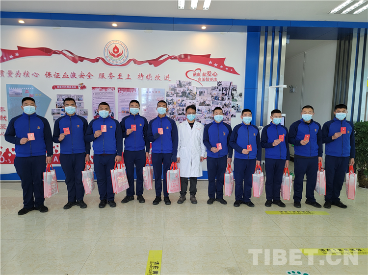 圖為那曲市森林消防大隊志愿者來到市中心血站獻血