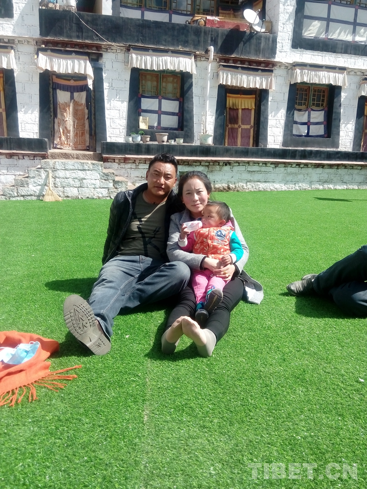 圖為尼瑪國杰跟妻子曲珍和孩子的合影