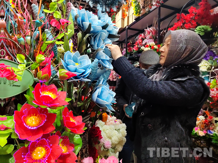 “我家店里客人挺多的,尤其這幾天,首先是因為我們的花種齊全,應(yīng)有盡有,價格也實惠,其次我們之間能進(jìn)行簡單的溝通,我會一些日常簡單的藏語,他們也會說一些漢語。所以挺受大家歡迎?!蹦履不ǚ坷习迥擦岣吲d地說。