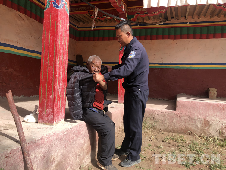 旦增桑布在參加“百萬警進千萬家”的活動時,看到南木加爺爺、卓瑪奶奶等三位孤寡老人的生活困境,主動承擔起照看老人的責任,并經(jīng)常抽出時間來噓寒問暖、打掃衛(wèi)生、送醫(yī)救治,并結成了幫扶對子。