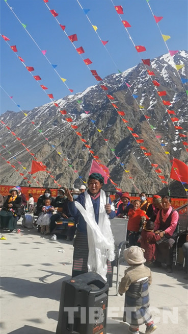 一大早,村民們匯聚在村委會(huì),將一面鮮艷的五星紅旗冉冉升起,國(guó)歌在山谷中回蕩。村委會(huì)第一書(shū)記次仁扎西召集大家進(jìn)行了新舊對(duì)比,憶苦思甜,感恩黨的關(guān)懷、感恩國(guó)家支持。宣講員白瑪卓嘎主講團(tuán)結(jié)的益處,引導(dǎo)鄰里鄉(xiāng)親團(tuán)結(jié)和睦,自覺(jué)守護(hù)中華民族大團(tuán)結(jié)。在陣陣歡呼與掌聲中,汝村文藝演出隊(duì)跳起具有本村特色的鍋莊舞,84歲的曲珍老阿媽唱響《北京的金山上》。有著26年黨齡的老黨員德吉大姐用一曲《再唱山歌給黨聽(tīng)》表達(dá)不忘黨恩,永遠(yuǎn)跟黨走的決心。