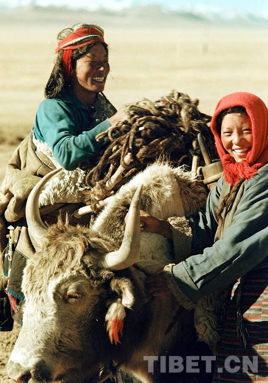 這是藏北高原一家使用牦牛馱物搬家、轉移草場的牧民人家(唐召明1988年攝)