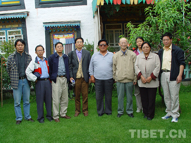 圖為陳慶英先生(右4)帶領(lǐng)課題組成員在西藏調(diào)研期間與西藏社會科學(xué)院、西藏大學(xué)專家合影 (圖片由張云提供)