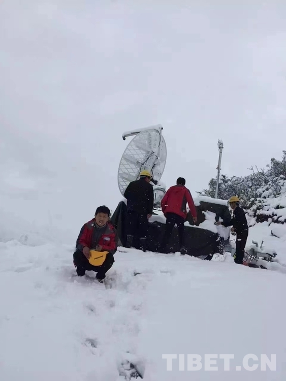 圖為旦增桑布(左一)和同事們在海拔5300米的礦區(qū)工作