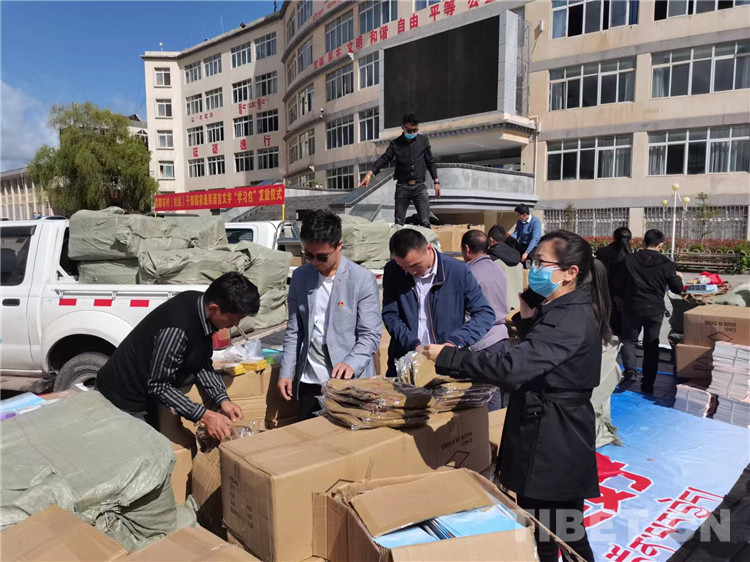 工作人員將“學(xué)習(xí)包”裝車后運(yùn)往十一縣(區(qū))