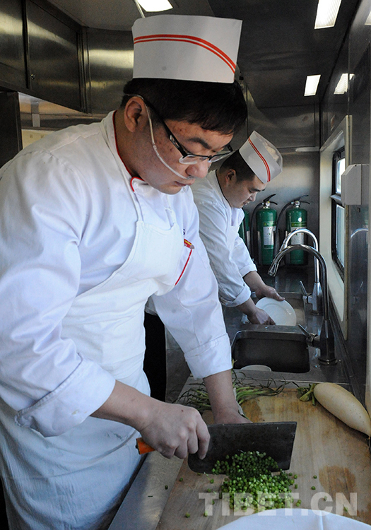 我在北京鐵路客運(yùn)段京藏列車第二組的餐車?yán)锟吹?,列車在通過唐古拉山區(qū)段時,餐車正在為旅客提供炒菜服務(wù)。我采訪的廚師長孫冠軍告訴我,京藏列車自開通運(yùn)營以來,除了像西紅柿炒雞蛋因高原沸點(diǎn)低而無法炒成片外,其他三四十種可口飯菜都能在列車運(yùn)行中的高海拔地段完成。