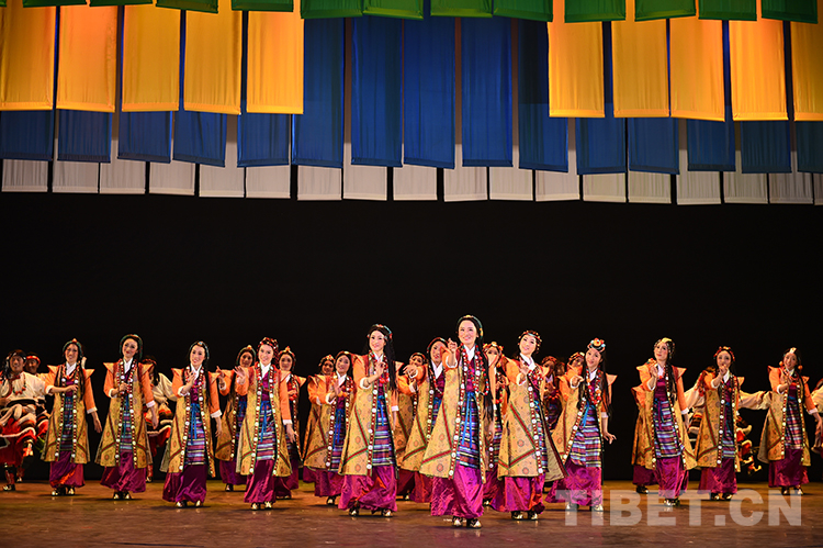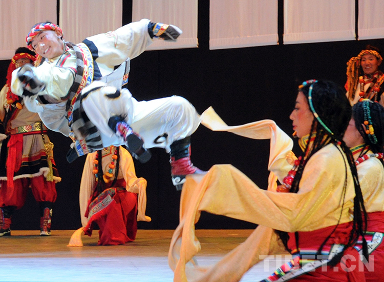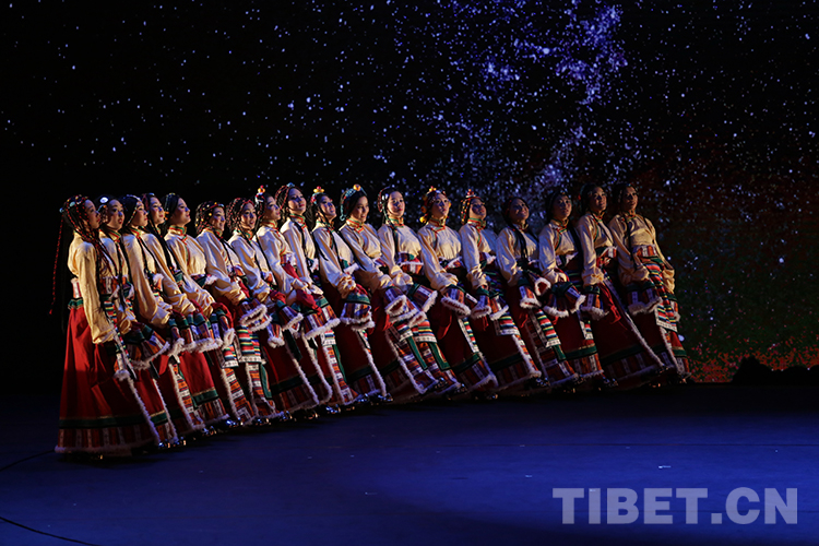 這是班戈縣諧欽民間藝術(shù)團的年輕舞蹈演員在北京國家大劇院演出時的劇照(唐召明2015年10月13日攝)