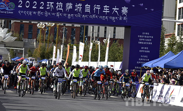 中國西藏網訊 7月23日9時33分許,隨著發(fā)令槍響,公路自行車男子精英組率先出發(fā)。當日,2022環(huán)拉薩城自行車大賽正式開賽,來自全國各地的300多名自行車愛好者匯聚“日光城”,用騎行的方式領略拉薩風光。