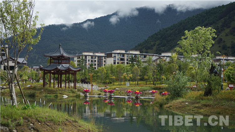 圖為林芝市工布公園的亭臺(tái)和流水 攝影:旦曲
