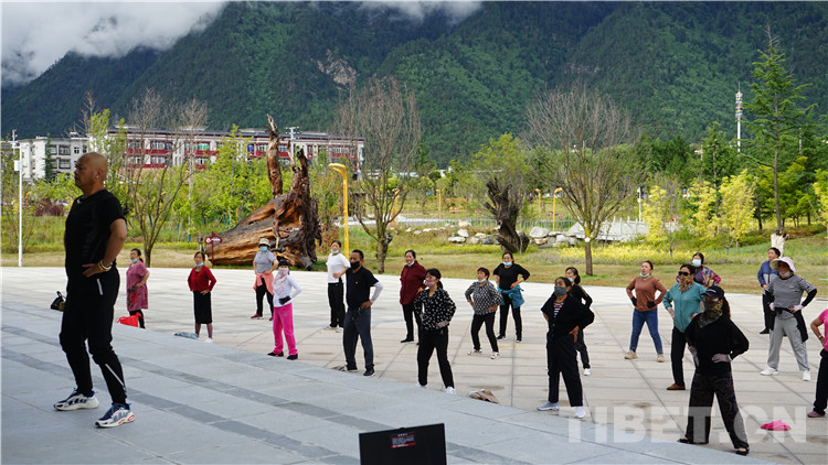 圖為林芝市工布公園早上九點(diǎn)跳廣場(chǎng)舞的場(chǎng)景 攝影:旦曲