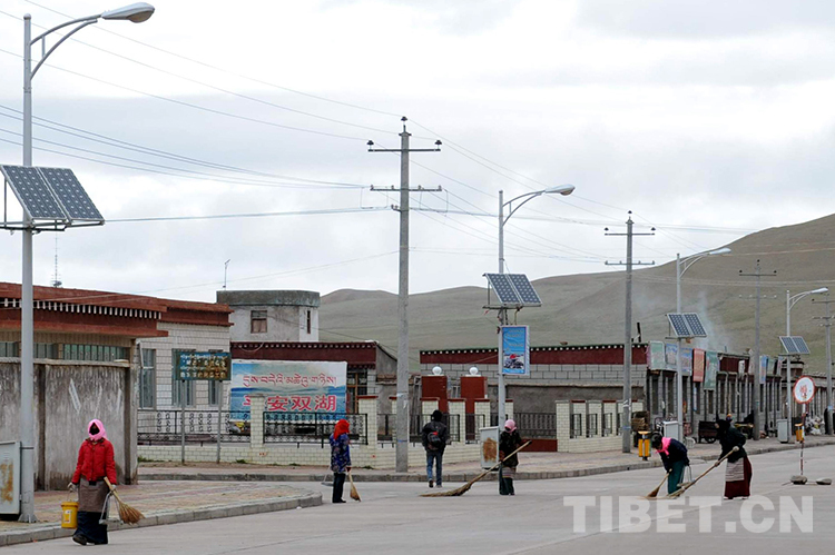 當(dāng)時(shí),經(jīng)過(guò)創(chuàng)業(yè)者三十多年的開發(fā)建設(shè),雙湖鎮(zhèn)中心已有了一條筆直寬敞的水泥路,道路兩旁還有漂亮的太陽(yáng)能路燈和垃圾箱,黨政辦公樓、敬老院、職工活動(dòng)中心、幼兒園、普若崗日賓館、加油站等新建筑拔地而起,并建起了大型的太陽(yáng)能光伏電站。
