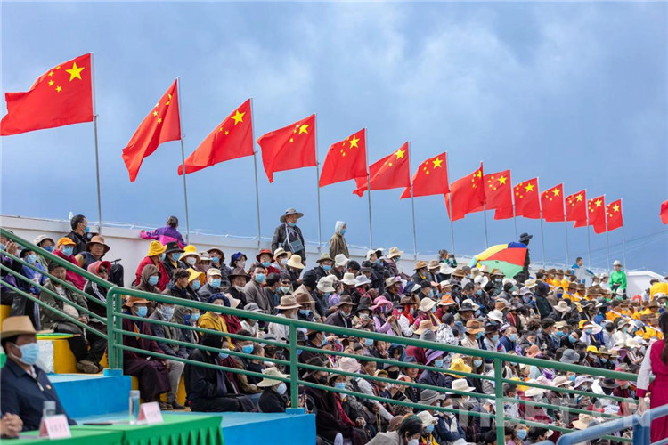 圖為紅原大草原雅克賽馬季開(kāi)幕式現(xiàn)場(chǎng)的觀眾
