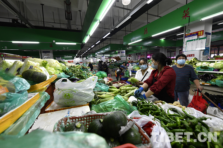 圖為8月9日,拉薩市柳梧農(nóng)貿(mào)市場內(nèi)蔬菜供應(yīng)充足 攝影:王媛媛