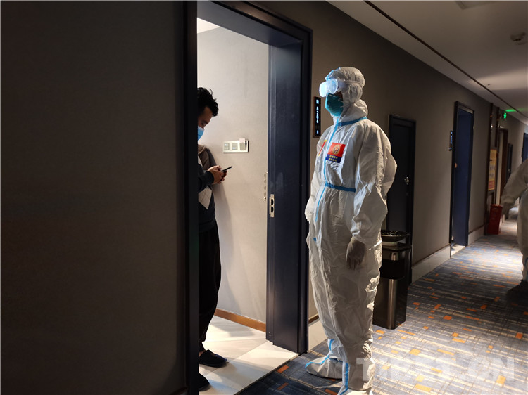 圖為日喀則大隊救援人員進(jìn)入定點隔離酒店收集信息