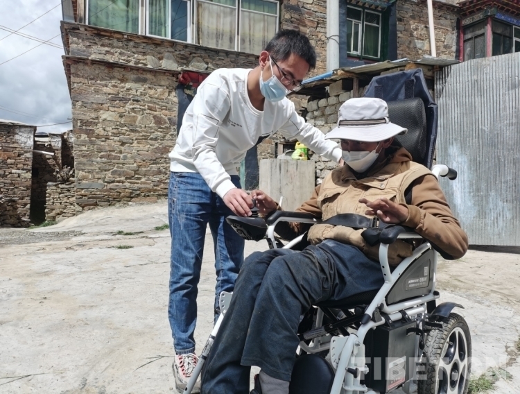 加麻鄉(xiāng)特日村一組有一名群眾仁增頓珠因為先天性雙腿癱瘓無法行走,但其父母年邁難以精心照顧這個殘疾兒子。了解具體情況后,閆磊立即個人出資3000元為仁增頓珠購買并送去電動輪椅。目前,仁增頓珠可以自己駕駛電動輪椅外出做核酸檢測,一家人逢人就說“黨的政策好、閆隊長好!”。