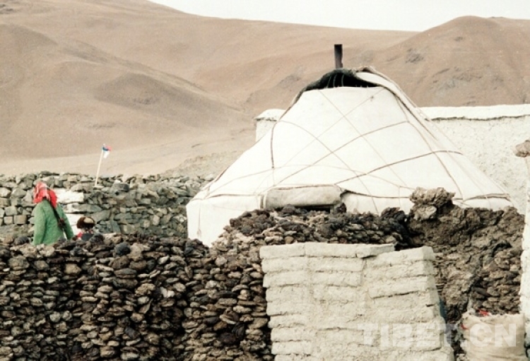這是從新疆回遷到雙湖辦事處榮瑪鄉(xiāng)(現(xiàn)尼瑪縣榮瑪鄉(xiāng))的一戶(hù)居住在蒙古包的牧民人家(唐召明1990年1月攝)