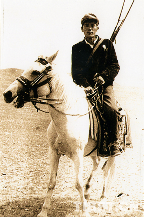 這是時(shí)任申扎縣縣長的洛桑丹珍騎馬,準(zhǔn)備走進(jìn)藏北無人區(qū)考察(唐召明提供,1974年攝)