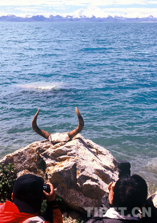 這是游客在拍攝納木錯(cuò)和遠(yuǎn)處綿延的念青唐古拉山美景(唐召明2001年攝)