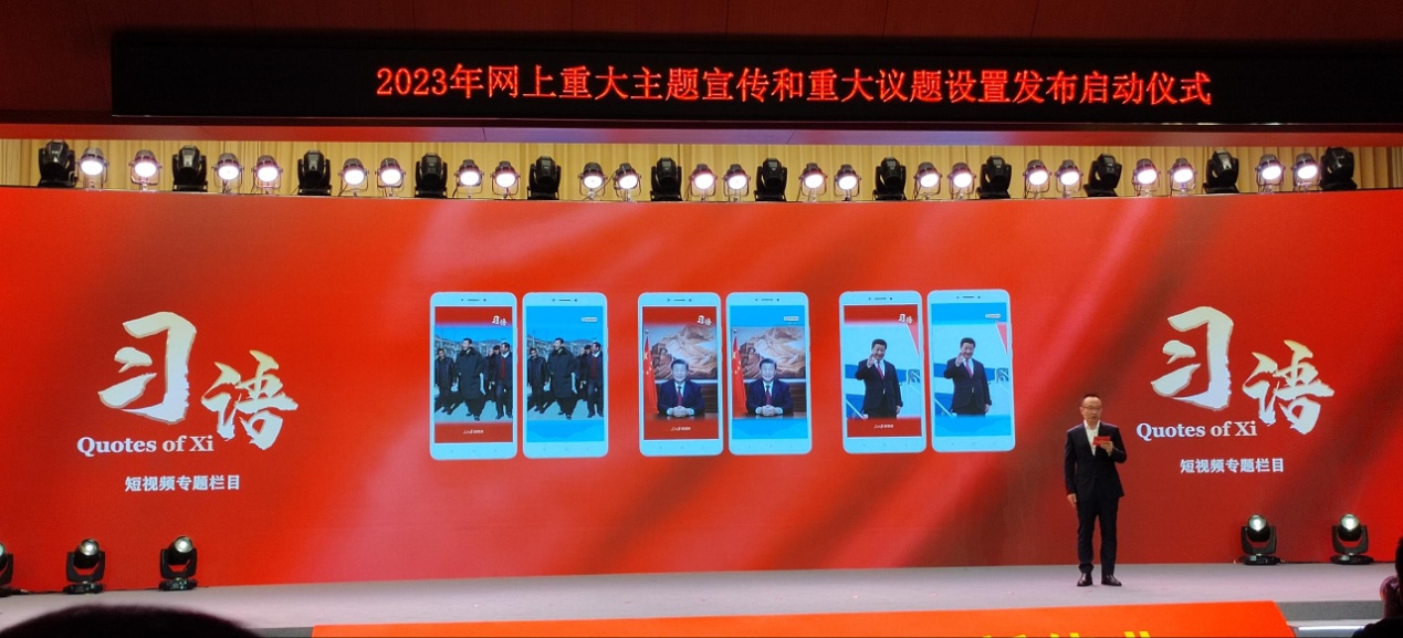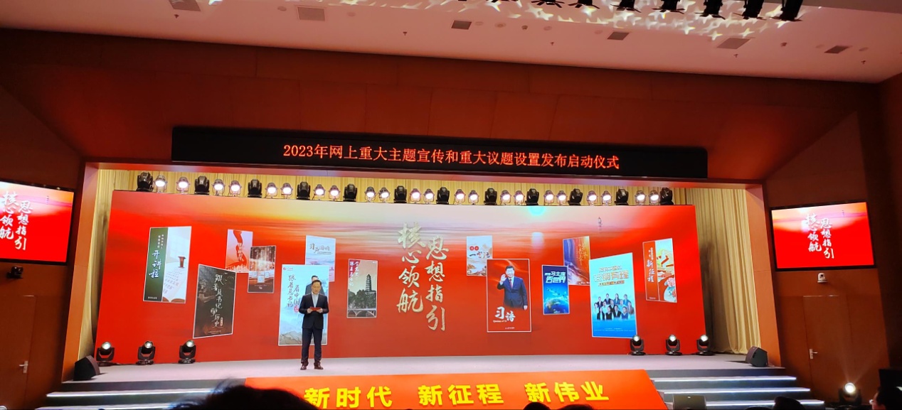 圖為“團(tuán)結(jié)奮進(jìn)新征程 奮楫揚(yáng)帆再出發(fā)”2023年網(wǎng)上重大主題宣傳和重大議題設(shè)置發(fā)布啟動儀式主會場