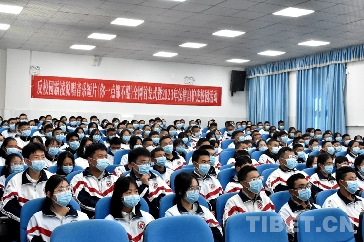 中國(guó)西藏網(wǎng)訊 3月7日,由共青團(tuán)西藏自治區(qū)委員會(huì)主辦的西藏首部反校園霸凌說(shuō)唱音樂(lè)短片《你一點(diǎn)都不酷》全網(wǎng)首發(fā)式暨2023年法律自護(hù)進(jìn)校園推廣活動(dòng)在拉薩市第二高級(jí)中學(xué)舉行。