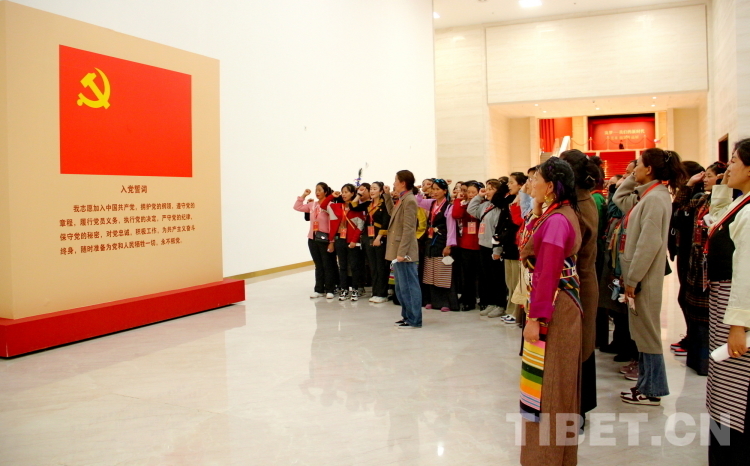 圖為“2023年西藏基層婦聯(lián)干部赴京學習參觀團”成員們在中國共產(chǎn)黨歷史展覽館重溫入黨誓詞 攝影:劉莉