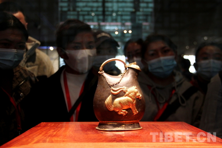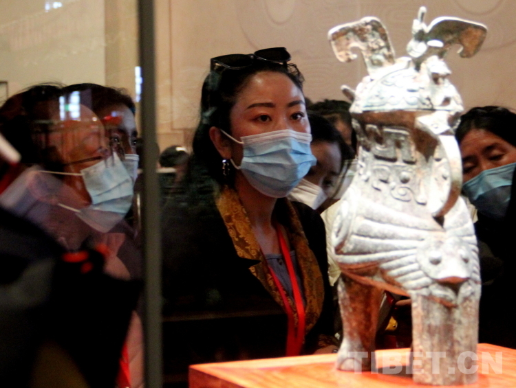 圖為2023年西藏基層婦聯(lián)干部赴京學習參觀團成員們在中國工藝美術(shù)館·中國非物質(zhì)文化遺產(chǎn)館內(nèi)欣賞唐代文物鎏金舞馬銜杯紋銀壺的復制件 攝影:劉莉