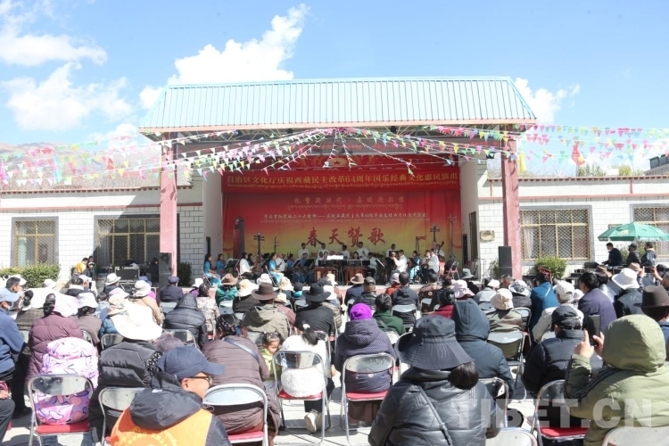 中國西藏網(wǎng)訊 近日,由西藏自治區(qū)文化廳主辦,西藏自治區(qū)歌舞團(tuán)、藏劇團(tuán)承辦的慶祝西藏民主改革64周年——國樂經(jīng)典文化惠民演出《春天贊歌》在拉薩拉開序幕,并將于近期在拉薩、日喀則等地演出近20場。