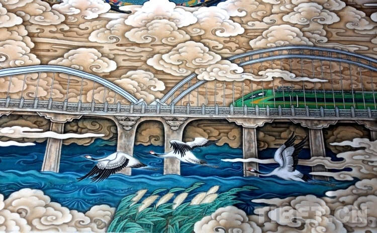 據(jù)介紹,自西藏和平解放以來,在黨和國家的政策扶持下,西藏的唐卡藝術(shù)得到了很好的傳承和發(fā)展,傳統(tǒng)唐卡的五大畫派在各自的創(chuàng)作領(lǐng)域都有很高的藝術(shù)成就,但是傳統(tǒng)唐卡的各大畫派集中創(chuàng)作的形式從未有過,用傳統(tǒng)唐卡描繪新西藏的盛世圖景更是空白。迫切地需要西藏本土的美術(shù)工作者擔起文化使命感,用民族美術(shù)的載體歌頌偉大的中華民族、歌頌我們所處的美好時代、歌頌來之不易的美好生活。大型唐卡壁畫《高原明珠》應(yīng)運而生。