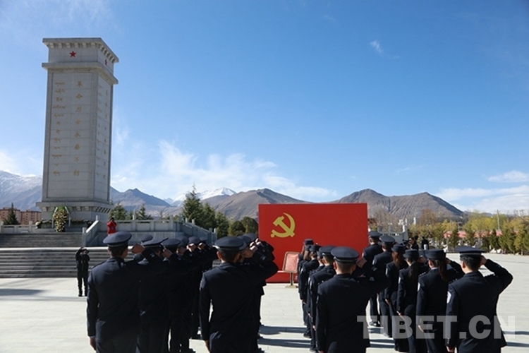 在鮮紅的黨旗前,支隊(duì)黨委書(shū)記、支隊(duì)長(zhǎng)洛桑南加同志帶領(lǐng)全體民警重溫入黨誓詞,用誓言詮釋對(duì)黨永葆忠誠(chéng)、筑牢忠誠(chéng)警魂的堅(jiān)定理想信念。隨后,全體民警來(lái)到邊防烈士旦增阿旺墓前,擦拭墓碑、敬獻(xiàn)鮮花,向長(zhǎng)眠在雪域高原的戰(zhàn)友表達(dá)深切的哀思。祭掃活動(dòng)后,全體民警參觀了烈士紀(jì)念館,瞻仰革命烈士的可歌可泣的英雄事跡。