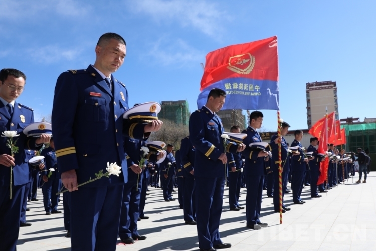 圖為西藏森林消防總隊(duì)代表們敬獻(xiàn)鮮花