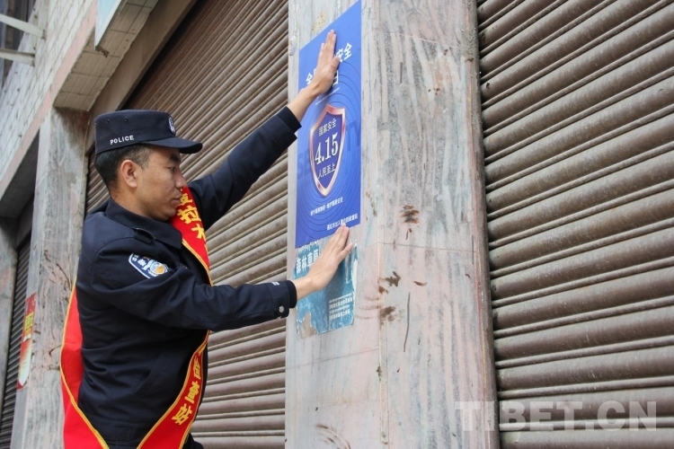 圖為聶拉木邊檢站民警在口岸轄區(qū)內(nèi)張貼“全民國家安全教育日”宣傳海報 攝影:軒紅偉