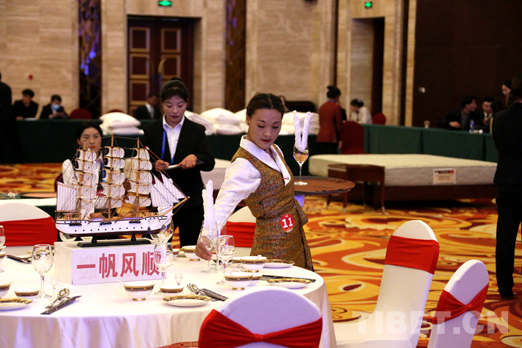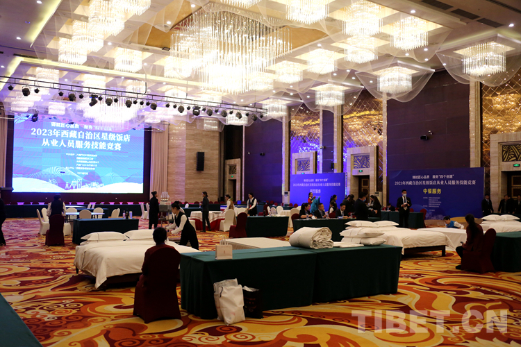 中國西藏網(wǎng)訊 5月11日,由西藏自治區(qū)旅游發(fā)展廳、西藏自治區(qū)總工會、共青團(tuán)西藏自治區(qū)委員會、西藏自治區(qū)婦女聯(lián)合會主辦,西藏旅游飯店業(yè)協(xié)會承辦的2023年西藏自治區(qū)星級飯店從業(yè)人員服務(wù)技能競賽在拉薩開賽。45名選手圍繞中餐宴會擺臺、西餐宴會擺臺、中式鋪床及夜床服務(wù)、前廳服務(wù)4個項(xiàng)目同臺競技。