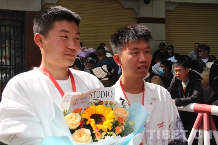 圖為張錦陽(yáng)和陳思杰結(jié)束考試后在考場(chǎng)外合影留念 攝影:德吉卓瑪