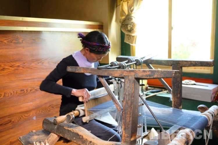 走進(jìn)氆氌紡織間,隊員們看到木質(zhì)的紡織機在吱嘎作響,工人左右手快速地配合,雙腳在幾個踏板間有條不紊地轉(zhuǎn)換,雙眼緊隨著雙手快速地游移目光,嫻熟程度令人嘆為觀止。