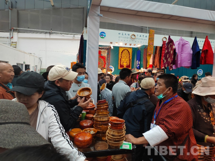 圖為第五屆中國西藏旅游文化國際博覽會(huì)展銷活動(dòng)現(xiàn)場(chǎng)市民在選購商品 攝影:次旦拉姆