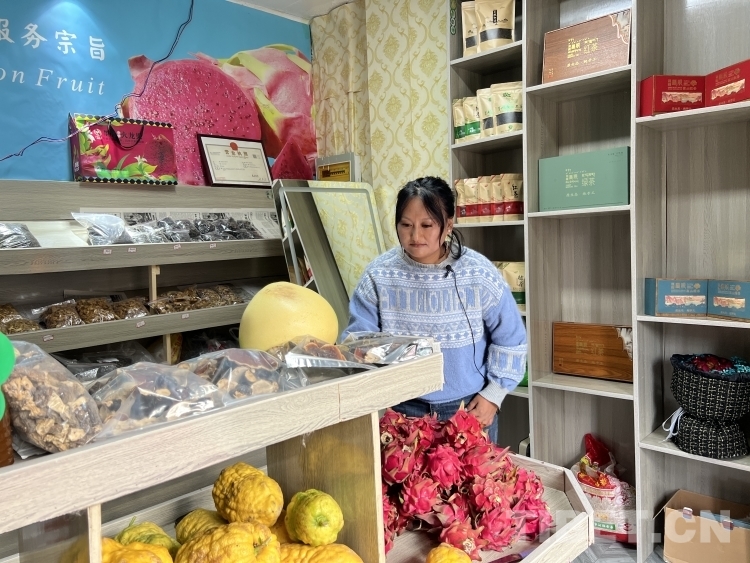 在墨脫縣德興鄉(xiāng)德興村村民西繞措姆的店里,我們看到了整齊擺放的火龍果、香蕉等熱帶水果。在整個墨脫縣,他們夫妻兩人是第一家,也是唯一一家規(guī)范種植火龍果的農(nóng)戶?!澳莻€時候我老公剛大學(xué)畢業(yè),在短視頻上看到有人在種火龍果,他就從網(wǎng)上買了火龍果苗,自己看著視頻學(xué)習(xí)種植。”2020年夫妻兩人迎來了第一個火龍果收獲季,2022年他們獲得政府民生實事扶持大學(xué)生資金30萬元,種植規(guī)模也擴大到了23畝。