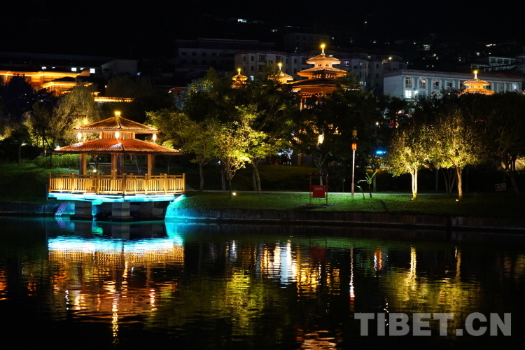 從福建援藏到廣東援藏,墨脫縣城的迅速發(fā)展離不開援藏兄弟省份不遠千里深入喜馬拉雅腹地,走進這朵圣地蓮花。蓮花圣地公園是每一個來墨脫縣旅游的人必打卡的地方,這里曾經(jīng)是一片沼澤地,在廣東省第七批援藏工作隊的規(guī)劃和建設(shè)下于2016年4月竣工,如今有湖泊、曲廊、涼亭、籃球場等齊全的基礎(chǔ)設(shè)施和園林景觀,成為了游客和當(dāng)?shù)厝诵蓍e的好去處。夜幕降臨,蓮花圣地公園內(nèi)的景觀燈倒映在湖泊當(dāng)中,一位來自四川的游客一邊拍照一邊和同行伙伴說“這里巴適得很?!?nbsp;