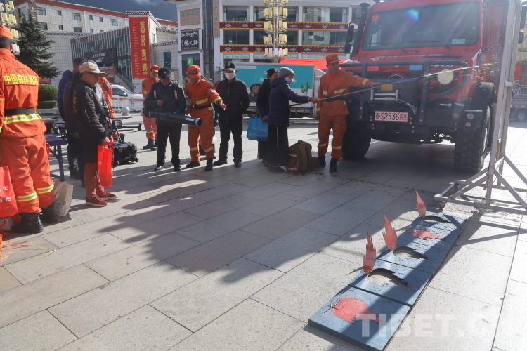 圖為林芝市森林消防支隊(duì)波密中隊(duì)在該縣廣場向市民科普日常消防安全知識(shí)