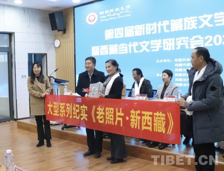 西藏民族大學(xué)校友、作家陳琳女士向西藏民族大學(xué)文學(xué)院贈送了她主編的6卷本大型系列紀實影像集《老照片·新西藏》。她表示,作為西藏文學(xué)的一名創(chuàng)作者,首先要思考為誰去寫、寫什么的問題,作家應(yīng)該堅持為人民而寫作的立場,堅持從民間和現(xiàn)實生活中汲取力量。