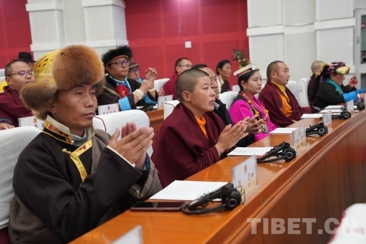 圖為開幕會現(xiàn)場委員在認真聽取各項報告 攝影:次旦拉姆